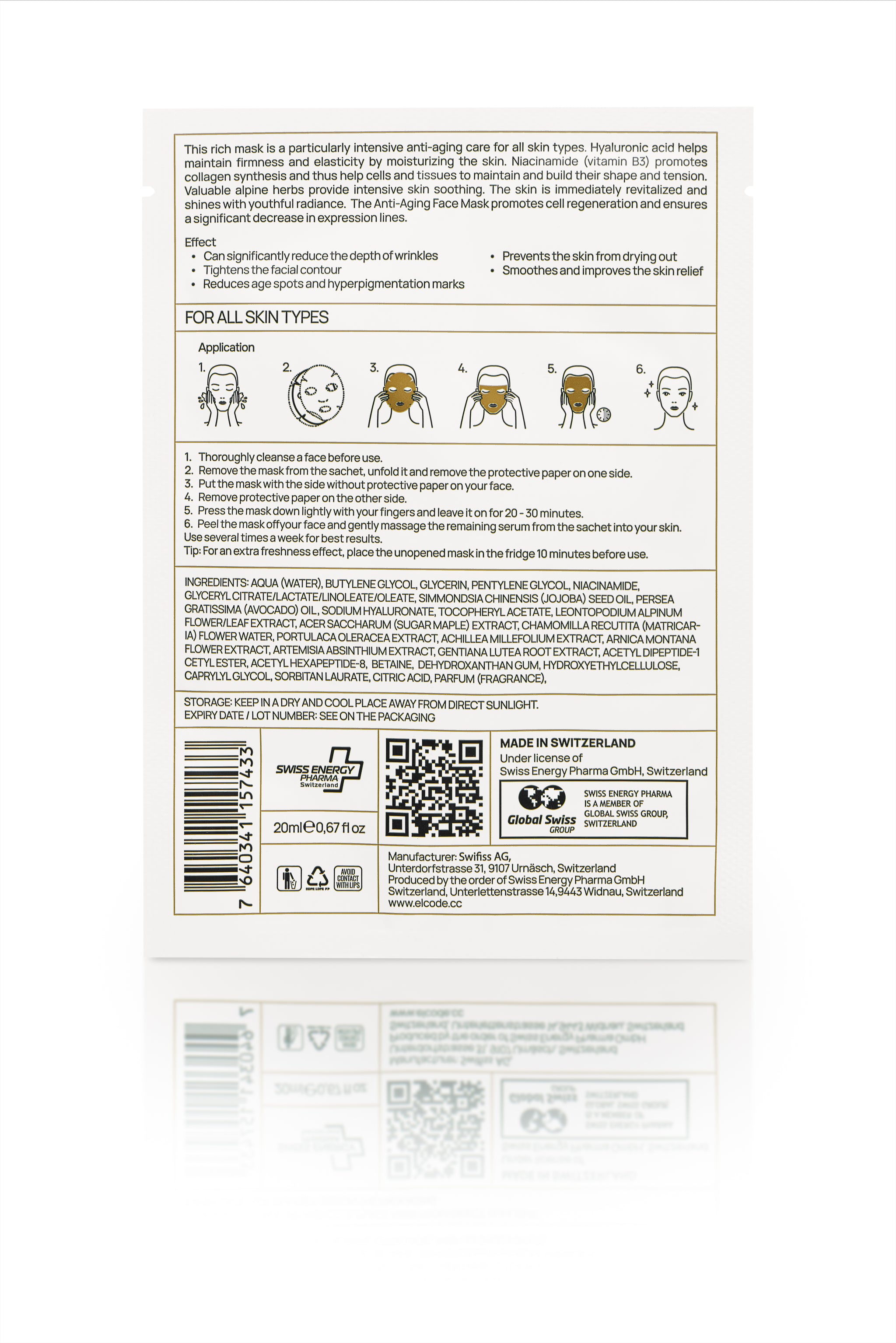 The El'Code biocellulose mask is made from medical grade biocellulose - a high-tech engineering material that ensures a perfect fit, deep contact with the skin and an even, clean effect after the first procedure. Thanks to its special structure, the mask works as a conductor of active ingredients, enhancing their action and providing fast, noticeable results.
