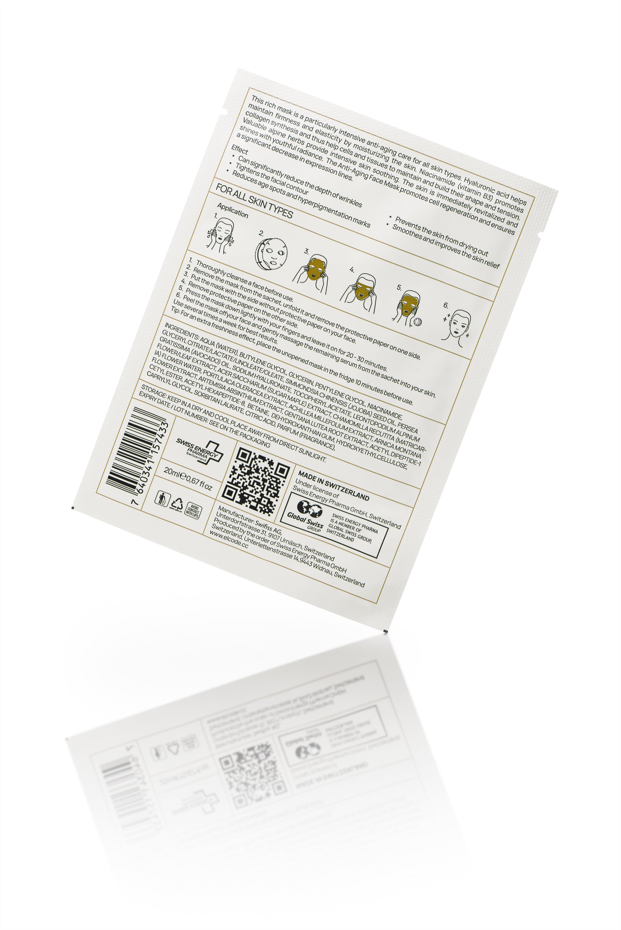 The mask functions as a complete system in one step: it soothes, restores, hydrates and firms the skin.