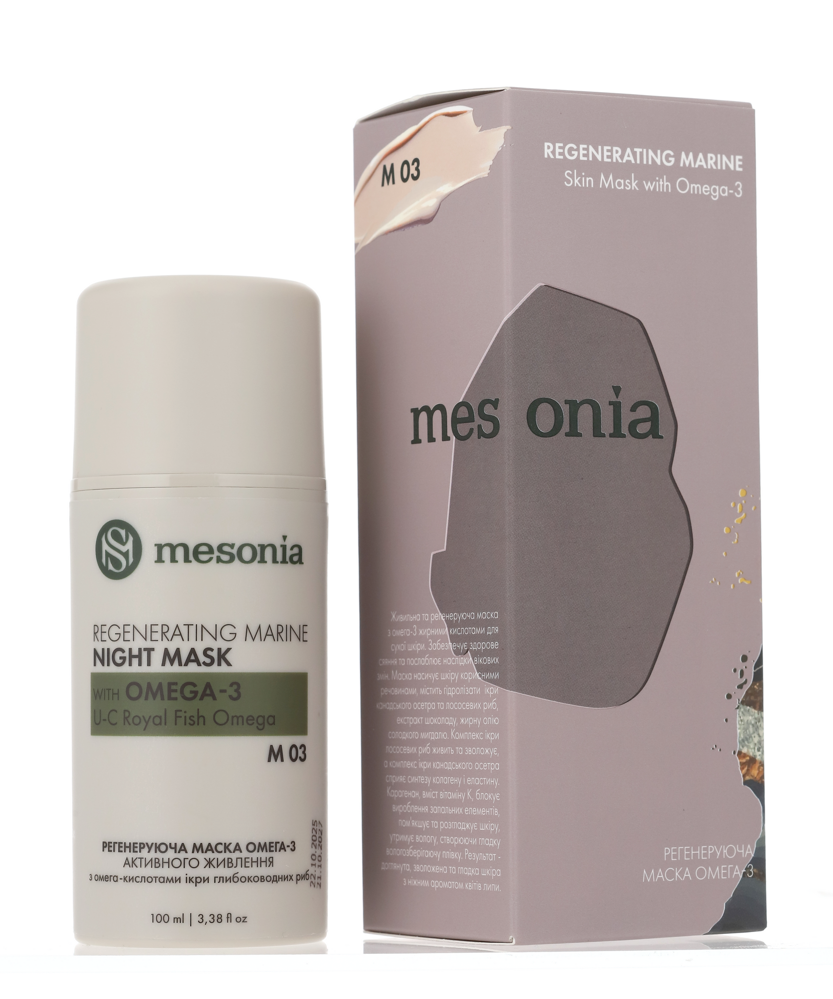 Regenerating Mask Omega-3 of active nutrition Gives radiance to the skin, does not have a film, is well absorbed, Balanced hypernutrition system with omega acids of deep-sea fish roe