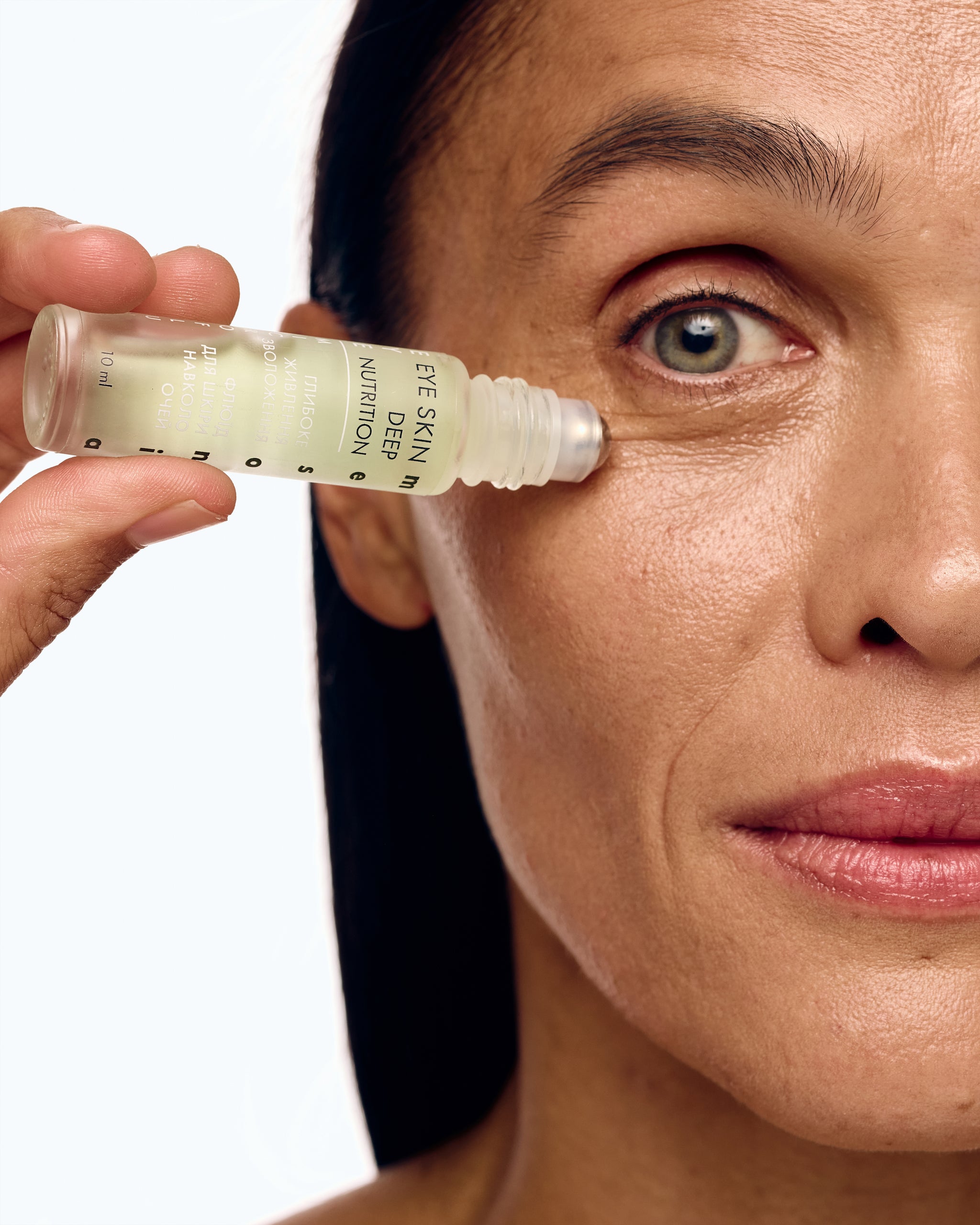 Для углубленного воздействия рекомендуем положить роллер флакон в морозильную камеру не более чем на 5 минут, после чего нанести легкими массирующими движениями непосредственно на кожу вокруг глаз по верхнему веку от внутреннего угла глаза к наружному и по нижнему веку от наружного угла к внутреннему.